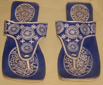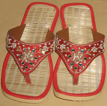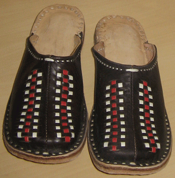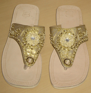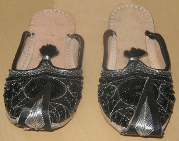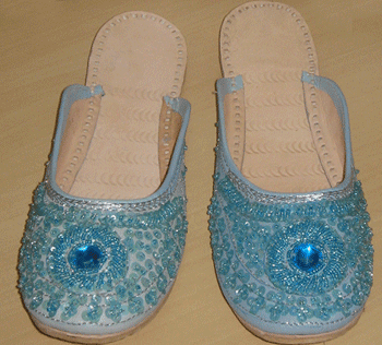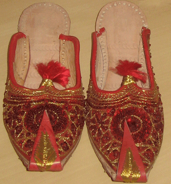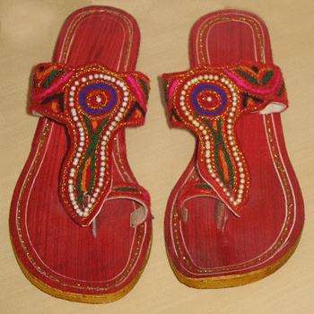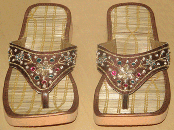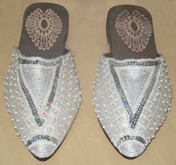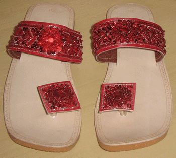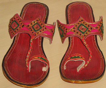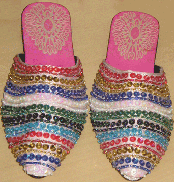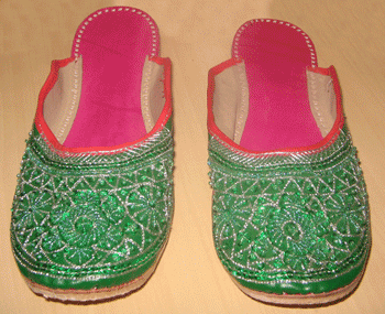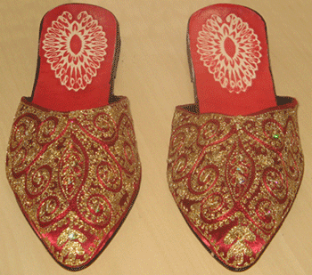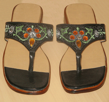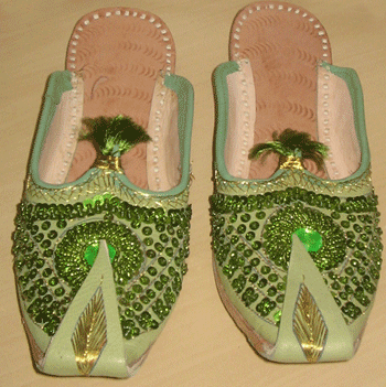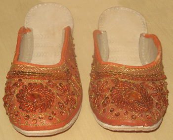 Hand made ethinic indian shoes and slippers in leather, artistic